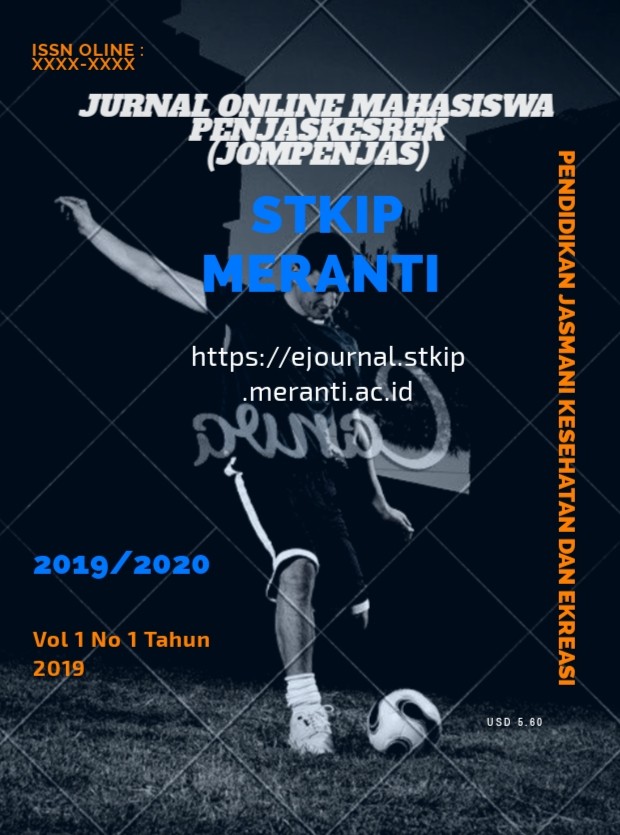 Jurnal online mahasiswa Program Studi Pendidikan Jasmani Kesehatan dan Rekreasi STKIP Meranti berisikan artikel ilmiah dari skripsi dan atau sebagian dari skripsi mahasiswa strata satu (S1) Program Studi Pendidikan Jasmani Kesehatan dan Rekreasi STKIP Meranti yang merupakan kewajiban mahasiswa menggunggah karya ilmiah sebagai syarat mengambil ijazah. Kewajiban unggah tersebut tertuang dalam Peraturan Rektor No. 001/JOM/STKIP.M/2019 tentang Pedoman Penerbitan Karya Ilmiah.